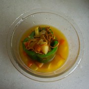 西葫芦、胡萝卜、豆皮、咖喱酱、烤肉料。