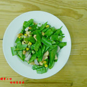 荷兰豆、玉米粒、豌豆、腰果、洋葱头。