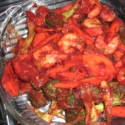西兰花、虾仁、胡萝卜、蚝油、番茄酱。