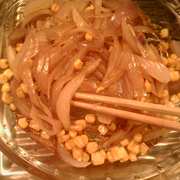 紫洋葱、玉米粒、酱油、凉拌汁、香油。