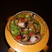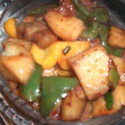 茄子、土豆、彩椒、葱、十三香、酱油。