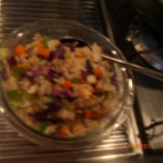 洋葱、紫甘蓝、剩米饭、青椒、虾仁、大头菜、奶酪、酱油。