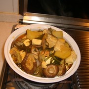 大白菜、豆腐、海带丝、香菇、土豆、鸡肉、酱油、十三香。