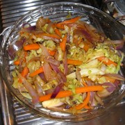 洋葱、圆白菜、胡萝卜、酱油、花椒。