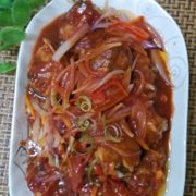 鱼、青辣椒、红辣椒、葱、生姜、盐、酱油、醋、番茄酱、淀粉、香油、调味精。