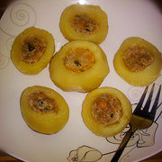 茄子、肉馅、鸡蛋、葱、姜、盐、酱油、香油、鸡精、蚝油、十三香、生抽、醋。