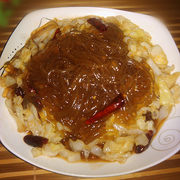 圆白菜、粉条、辣椒、葱花、酱油、醋、蚝油、盐、调味精。