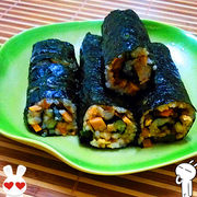 米饭、海苔、火腿肠、鸡蛋、胡萝卜、黄瓜、糖醋酱、番茄酱、白醋、白糖、蘑菇肉酱。