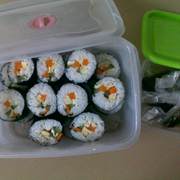 白饭、胡萝卜、青瓜、鸡蛋、紫菜、盐、白糖、胡椒粉、白醋。