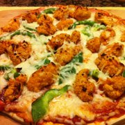 面饼、鸡米花、火腿、香肠、奶酪、青椒、番茄酱。