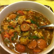 小龙虾、虾、香肠、大米饭、青椒、洋葱、辣椒粉、黑胡椒、盐、淀粉。