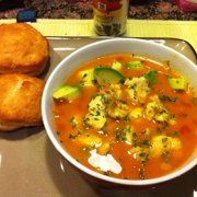 鱼片、西红柿、洋葱、西葫芦、牛油果、豆腐、番茄酱、盐、柠檬。