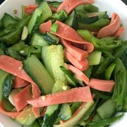 青辣椒、大火腿、黄瓜、大蒜、盐、酱油、油。