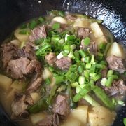 牛肉、胡萝卜、土豆、、辣椒、洋葱、芹菜叶、姜丝、葱、桂皮、胡椒粉、盐巴、酱油。