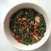 猪肉、豆角、大蒜、葱白、辣椒、豆瓣酱、盐巴。