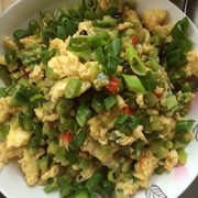 苦瓜、鸡蛋、盐巴、豆豉、油、红辣椒、大蒜、葱。