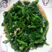 新鲜茵陈、猪肉、蒜苔、面、蒜汁、鸡精。