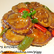 茄子、肉馅、红辣椒、青辣椒、姜、大葱葱白、泰式甜辣酱、酱油、盐。