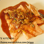 三文鱼骨、姜、葱、泰式甜辣酱、酱油、盐。