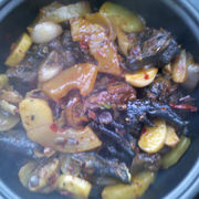 乌骨鸡、莴笋、洋葱、香菇、冬瓜、山药、花生油、桂皮、豆瓣酱、盐、葱、姜、蒜、八角、花椒、辣椒、五香粉、花椒粉、海底捞麻辣香锅底料。