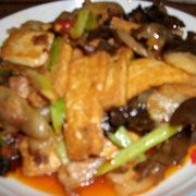 五花肉、豆腐、木耳、白葱、姜、豆瓣酱、白糖、鸡精。