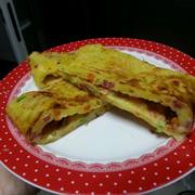 鸡蛋、面粉、牛奶、牛肉火腿、胡萝卜、包菜、葱花、芝士、黄油、盐、糖、咖喱粉、黑胡椒粉、色拉油。