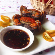 螃蟹、蒜头、生姜片、醋、六月鲜特级酱油、麻油、黄酒。