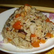 大米、糯米、鸡腿、芋头、胡萝卜、香菇、黑木耳、盐、鸡精、黄酒、老抽、黑胡椒粉。