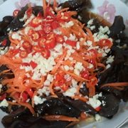 木耳、胡萝卜、蒜、小米椒、白米醋、生抽、白糖。