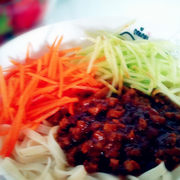 猪肉末、冷冻面、胡萝卜、黄瓜、豆瓣酱、番茄酱。