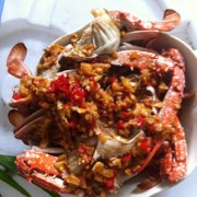 蓝蟹、罐装小剁、蒜头、僵、酱油、盐、味精、调味粉。