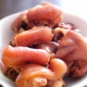 猪脚、姜片、大料、食用油、料酒、酱油、盐、鸡精、红乳汁。