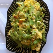 苦瓜、鸡蛋、蒜头、食用油、盐、鸡精、胡椒粉。