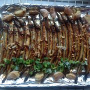 针鱼、盐、鸡精、糖、醋、胡椒粉、辣椒酱、孜然、苏子、芝麻、花生粉。