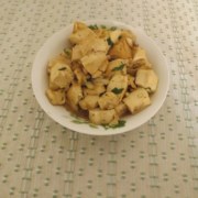 豆腐、大葱、色拉油、孜然、盐、酱油、糖。
