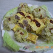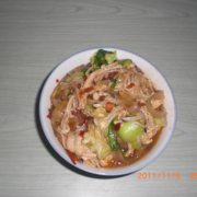 肉、金针菇、油菜、大头菜、宽粉、麻椒、郫县豆瓣酱。