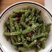 豆角、葱、姜、蒜、辣椒、花椒、盐、芝麻、食用油。