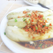 茄子、蒜、红辣椒、葱、姜、蒸鱼鼓油、盐、水、油。