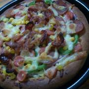 低筋面粉、酵母、水、黄油、番茄、青椒、火腿、腊肠、蘑菇、玉米、马苏里拉奶酪、洋葱、盐、糖、番茄酱。