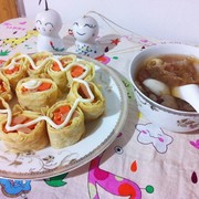 鸡蛋、面粉、清水、胡萝卜、玉米肠、芝士片、盐。