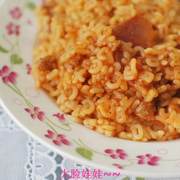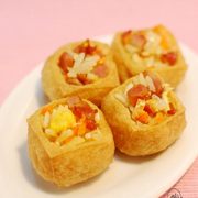 豆腐泡、米饭、胡萝卜、叉烧、鸡蛋。