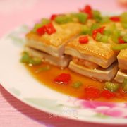 猪腩五花肉、绍兴黄酒、冰糖、姜、葱、老抽、生抽、腐竹。
