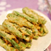 豆角、芝麻、蒜末面粉、干淀粉、盐、料酒、蛋清、酱油、白糖、辣椒油、胡椒粉、花生油。