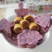 玉米面、白面、紫薯、牛奶、鸡蛋、糖。