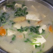 鲫鱼、豆腐、葱、姜、香菜、金桔、盐、胡椒粉、五香粉。