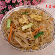 河粉、鸡蛋、绿豆芽、胡萝卜、油、盐、生抽、胡椒、孜然、葱花、蒜苗、姜末。