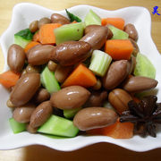 花生、黄豆、葱、姜、花椒、八角、盐、胡萝卜丁、黄瓜丁、芹菜丁。