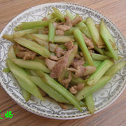 芹菜、肉丝、盐、油、料酒、生抽、葱花、姜片、花椒。