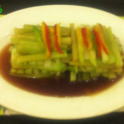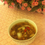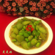 丝瓜、毛豆、姜末、蒜花、盐、水淀粉。