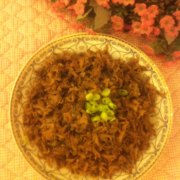 牛肉、香米、豆腐、玉米粒、胡萝卜、鸡蛋、葱、姜、盐、料酒、胡椒、花椒、生抽。